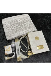 Kadife Kaplı Kuranı Kerim Seccade Ve Hediyelik Çeyiz Set Gold Renk