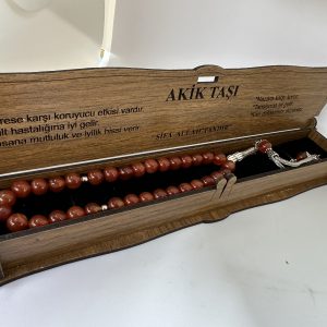 33 lü Doğal Taş AKİK Taşı Tesbih Kutulu