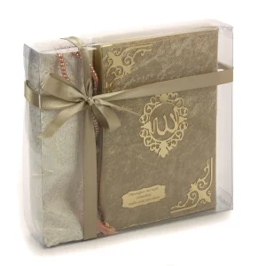 Hediyelik Kadife Kuranı Kerim Seccade ve Tesbih Gold