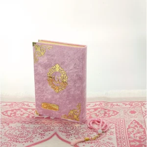 Hediyelik Kadife Kuranı Kerim Seccade tesbih set Pembe