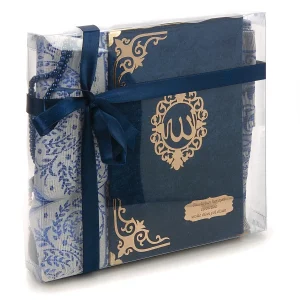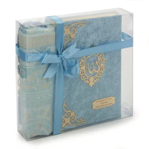 Hediyelik Kadife Kuranı Kerim Seccade ve tesbih set Mavi